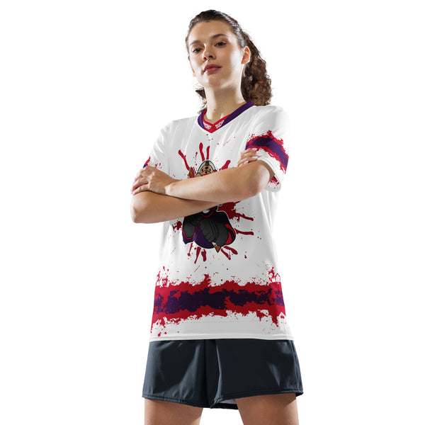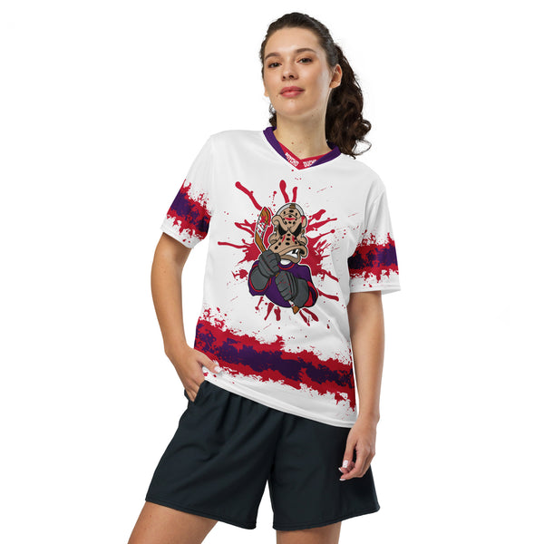 Looking for the perfect sports jersey? We have you covered—made of 100% recycled polyester fabric, this shirt is breathable, moisture-wicking, and has a double-layered v-neck collar that creates a premium look.
