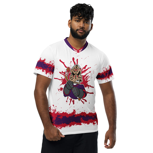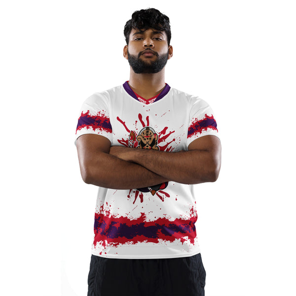 Looking for the perfect sports jersey? We have you covered—made of 100% recycled polyester fabric, this shirt is breathable, moisture-wicking, and has a double-layered v-neck collar that creates a premium look.