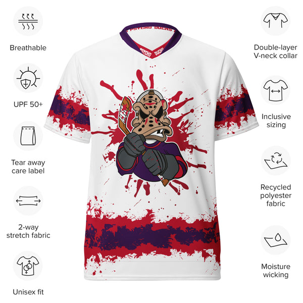 Looking for the perfect sports jersey? We have you covered—made of 100% recycled polyester fabric, this shirt is breathable, moisture-wicking, and has a double-layered v-neck collar that creates a premium look.