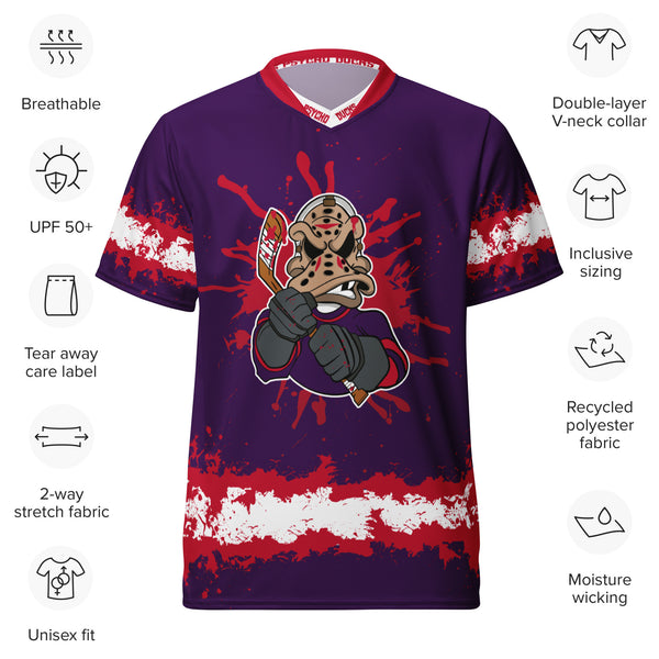 Looking for the perfect sports jersey? We have you covered—made of 100% recycled polyester fabric, this shirt is breathable, moisture-wicking, and has a double-layered v-neck collar that creates a premium look.